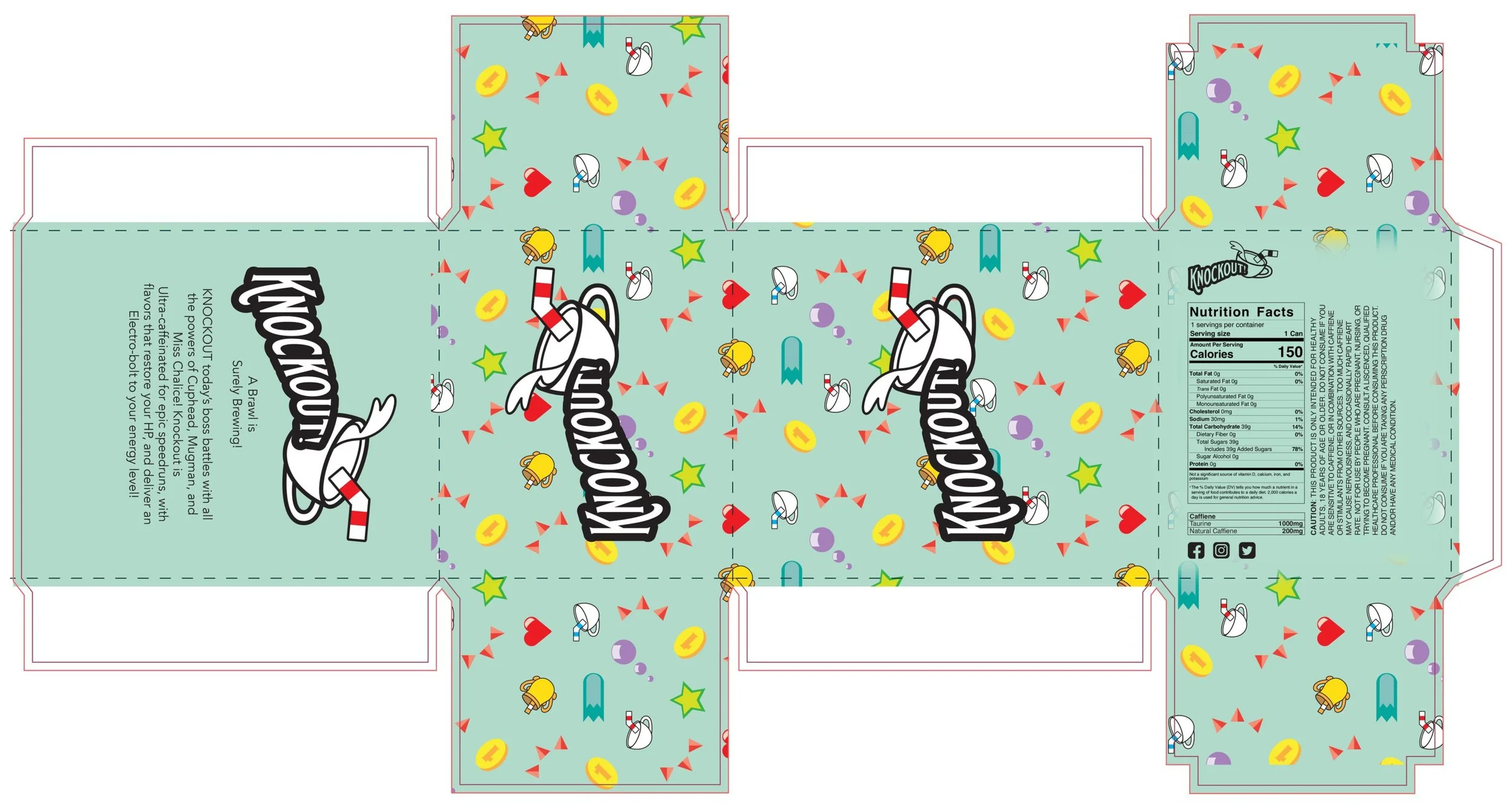 Knockout! Energy is a fictional energy drink, inspired by Studio MDHR’s hit video game, Cuphead!